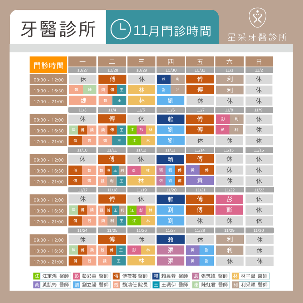 服務時間: 週一至週六 09:00~21:00(實際服務時間請依下方門診表為主)