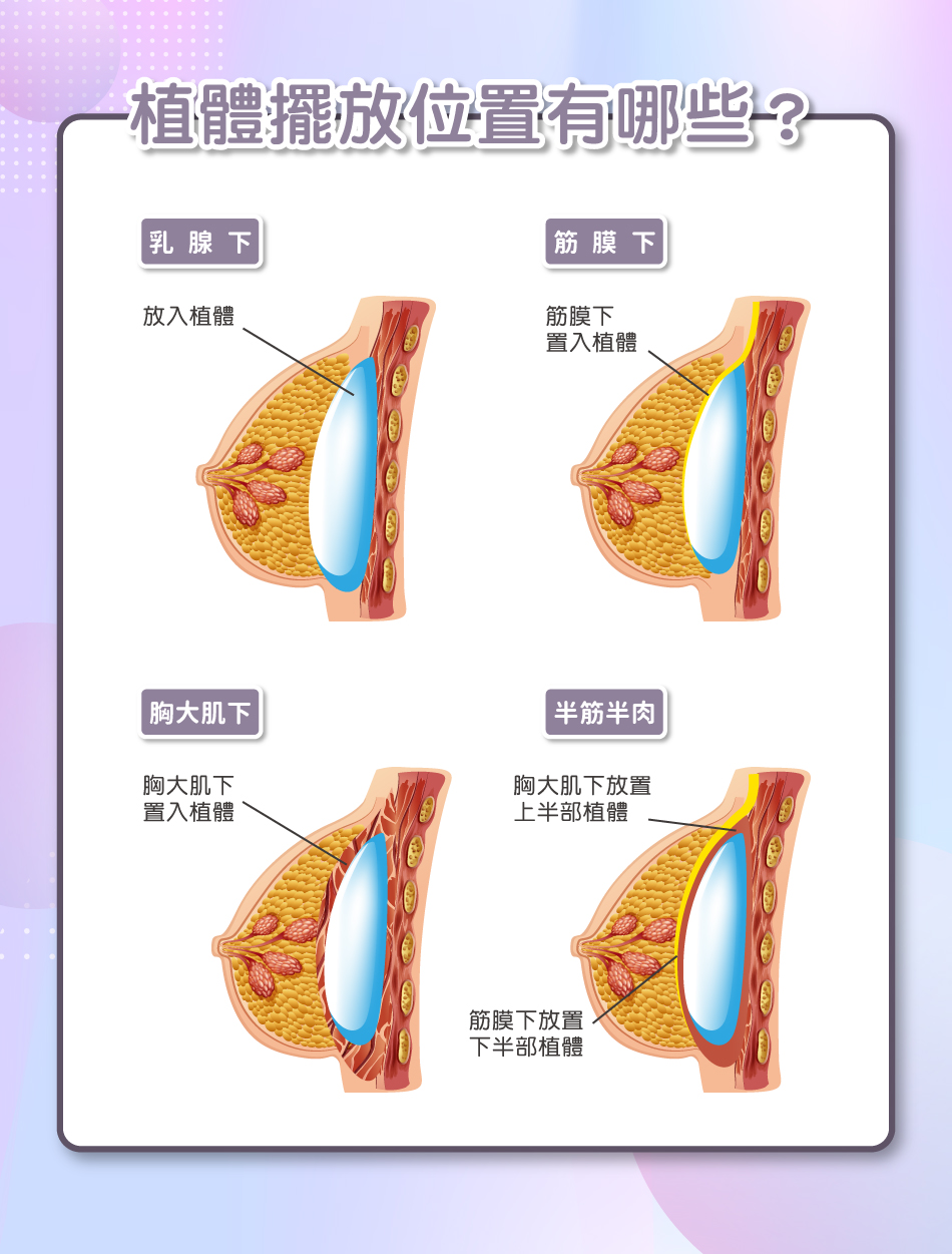 ▎隆乳手術常見的植體擺放位置