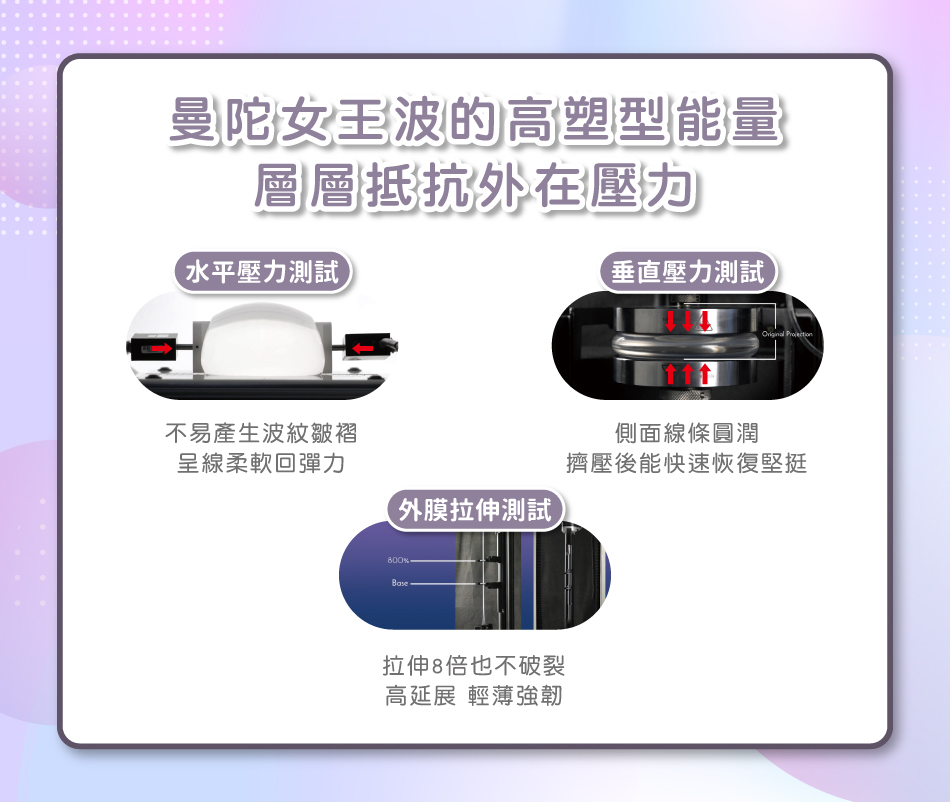 1、輕薄高延展性外膜:延續曼陀經典的光滑面外型,更加圓潤飽滿。