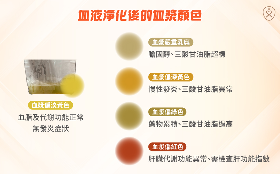 我們可透過血液淨化後的血漿顏色,來確定身體狀況: