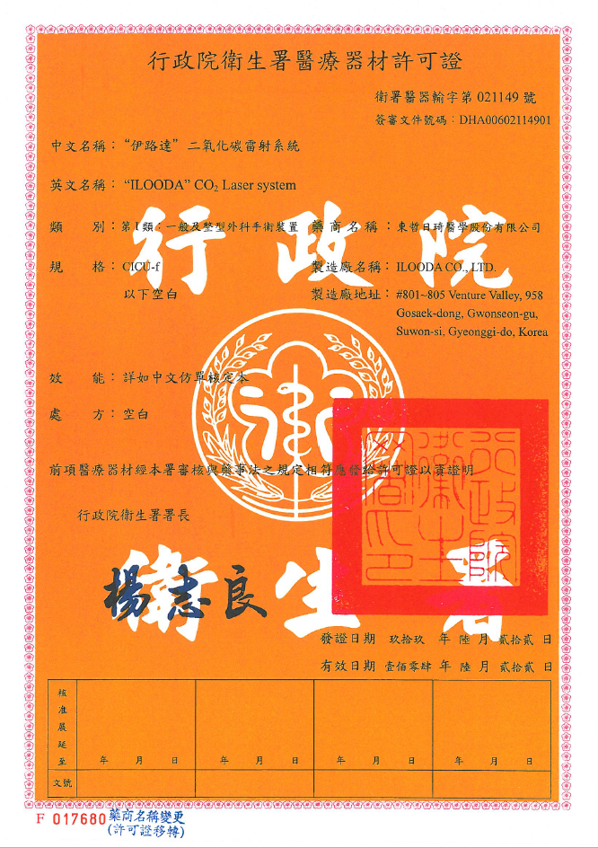 2. 手術後色素斑產生變化、皮膚組織產生變化者。